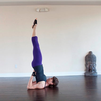 - Raise both legs overhead - heels above hips, hips above shoulders.